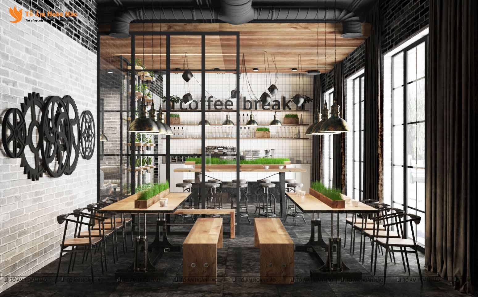Việc lựa chọn một phong cách độc đáo, sáng tạo của Break Coffee đã đem đến cảm giác mới lạ và khác biệt giữa hàng ngàn quán cà phê trên thị trường. Sử dụng tone màu quán mạnh mẽ của đen, nâu gỗ, trắng làm nổi bật các chi tiết của sẩn phẩm nội thất tại quán. Lối thiết kế quán cà phê hoàn toàn độc đáo chắc chắn hứa hẹn là một địa điểm lý tưởng cho khách hàng.