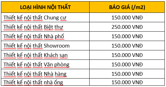 Báo giá thiết kế nội thất biệt thự