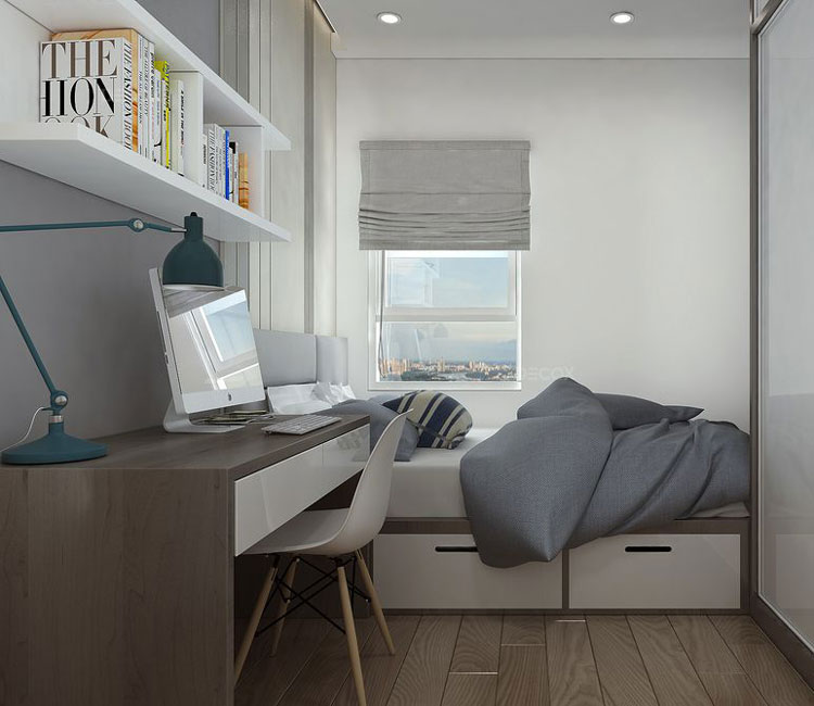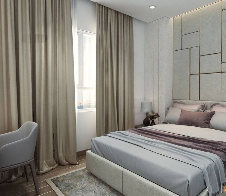 Phòng ngủ master thiết kế thoáng đãng với tone màu trắng kết hợp nâu trầm sang trọng.Một phòng ngủ khác với tone trắng xám trẻ trung, đầy sáng tạo. Mỗi không gian đều được thiết kế phù hợp với lứa tuổi, sở thích của từng thành viên trong gia đình.