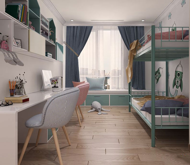 Phòng ngủ trẻ em được thiết kế khoa học, đảm bảo không gian nghỉ ngơi, học tập cho các bé. Giường tầng được cho là giải pháp tối ưu nhất giúp tiết kiệm không gian khi trong nhà có 2 bé sát độ tuổi nhau.