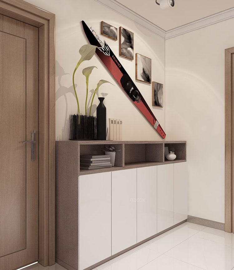 Phòng khách dành riêng một góc cho nghệ thuật, là nơi để cô con gái chơi đàn cho cả gia đình thưởng thức mỗi khi sum họp. Ngay lối vào là hệ thống tủ gồm nhiều ngăn kéo, giúp lưu trữ đồ đạc, khiến căn nhà luôn gọn gàng, ngăn nắp.