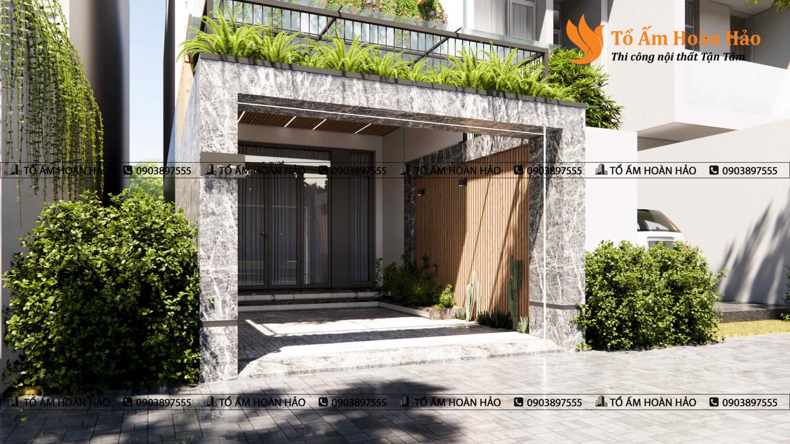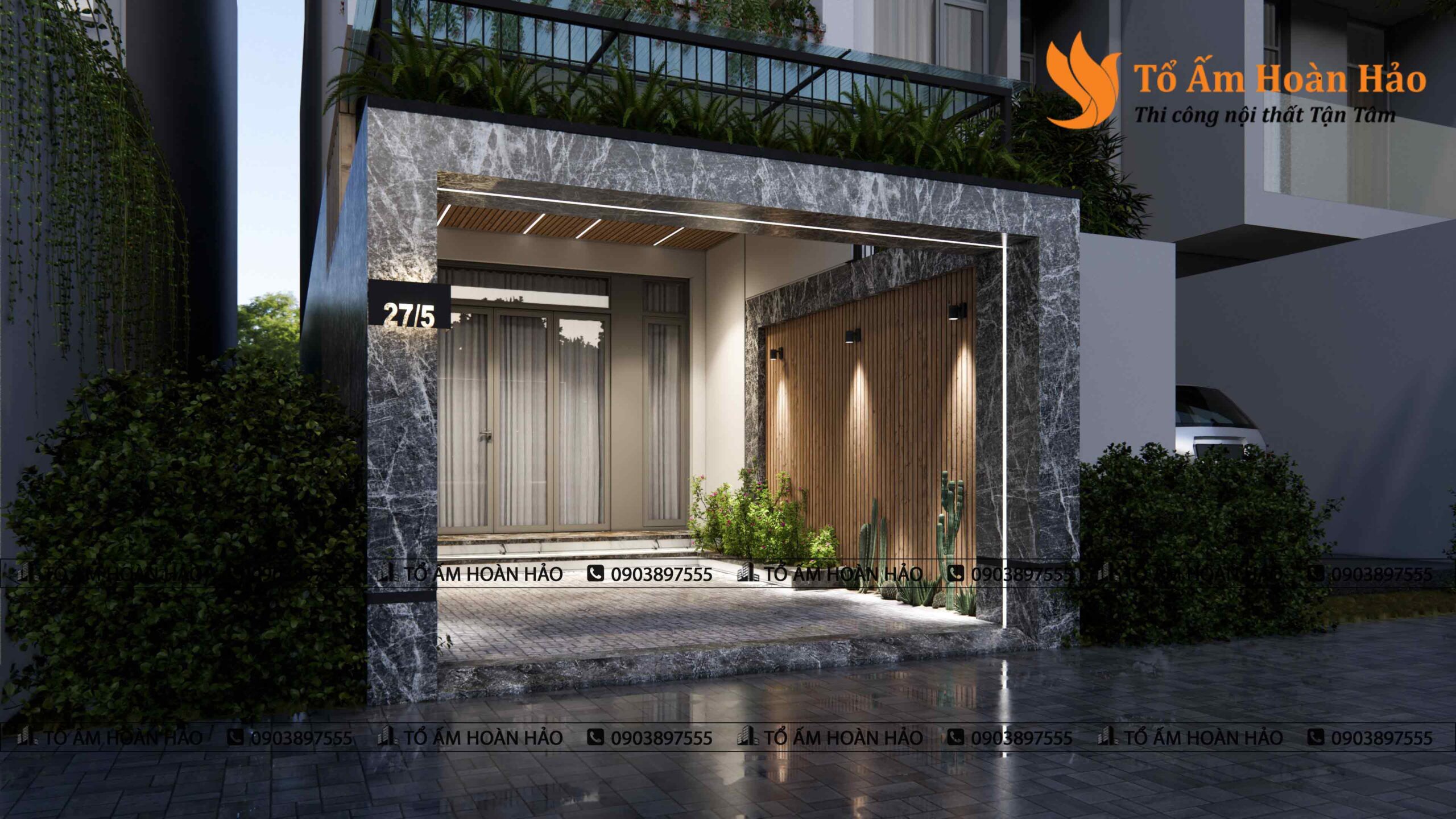 Đội ngũ thiết kế và thi công nhà phố của Tổ ấm hoàn hảo đã lựa chọn thiết kế phần mặt tiền sang trọng và hiện đại cho căn nhà.