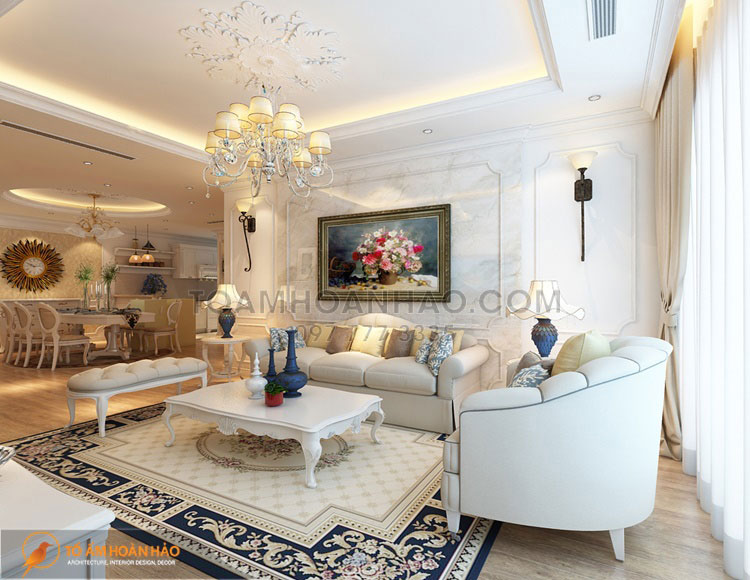1. Thiết kế nội thất phòng khách với phong cách tân cổ điển