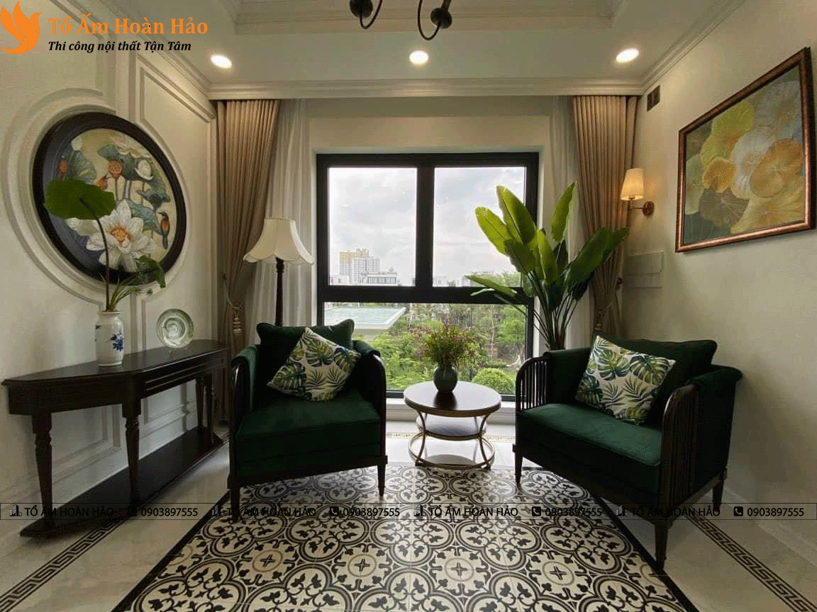 5. Thiết kế nội thất phòng khách nhà vườn đẹp phong cách Indochine